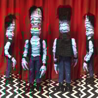 Here's a new extra large FrankenMelt. He's a baby blue melt much like ghost of Frank and 4 eyes in his head. Real denim jeans and broken chains around his wrists and sporting a vest like his son wore... He stands about 16inches tall and is articulated at the arms and head. Comes bagged with header.
